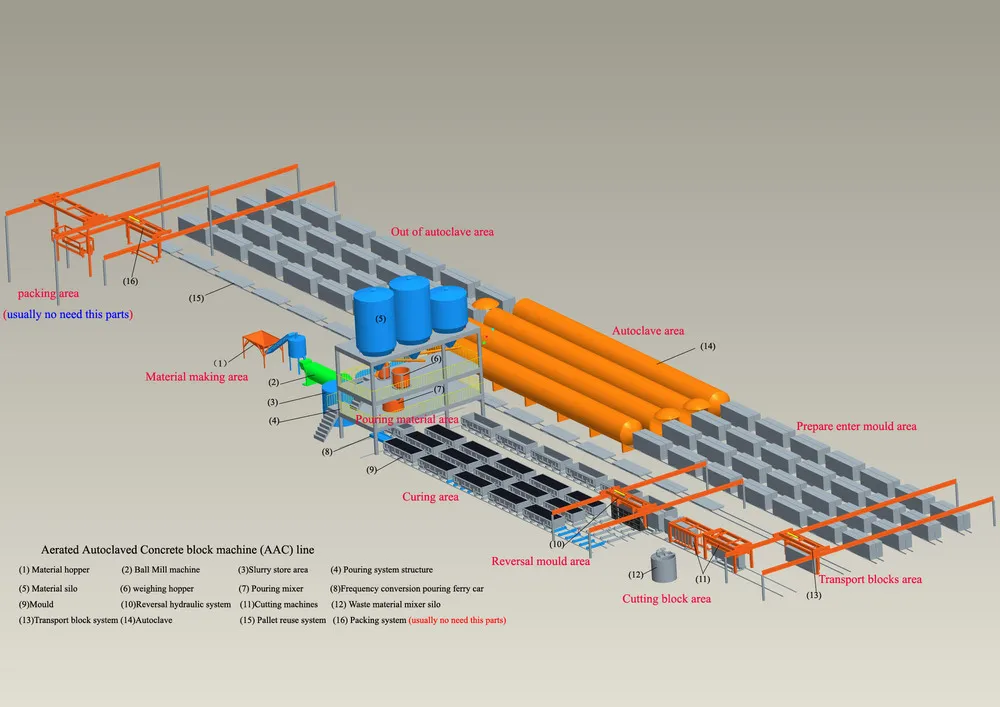 1.Storing, supplying and processing of raw materials of AAC blocks.